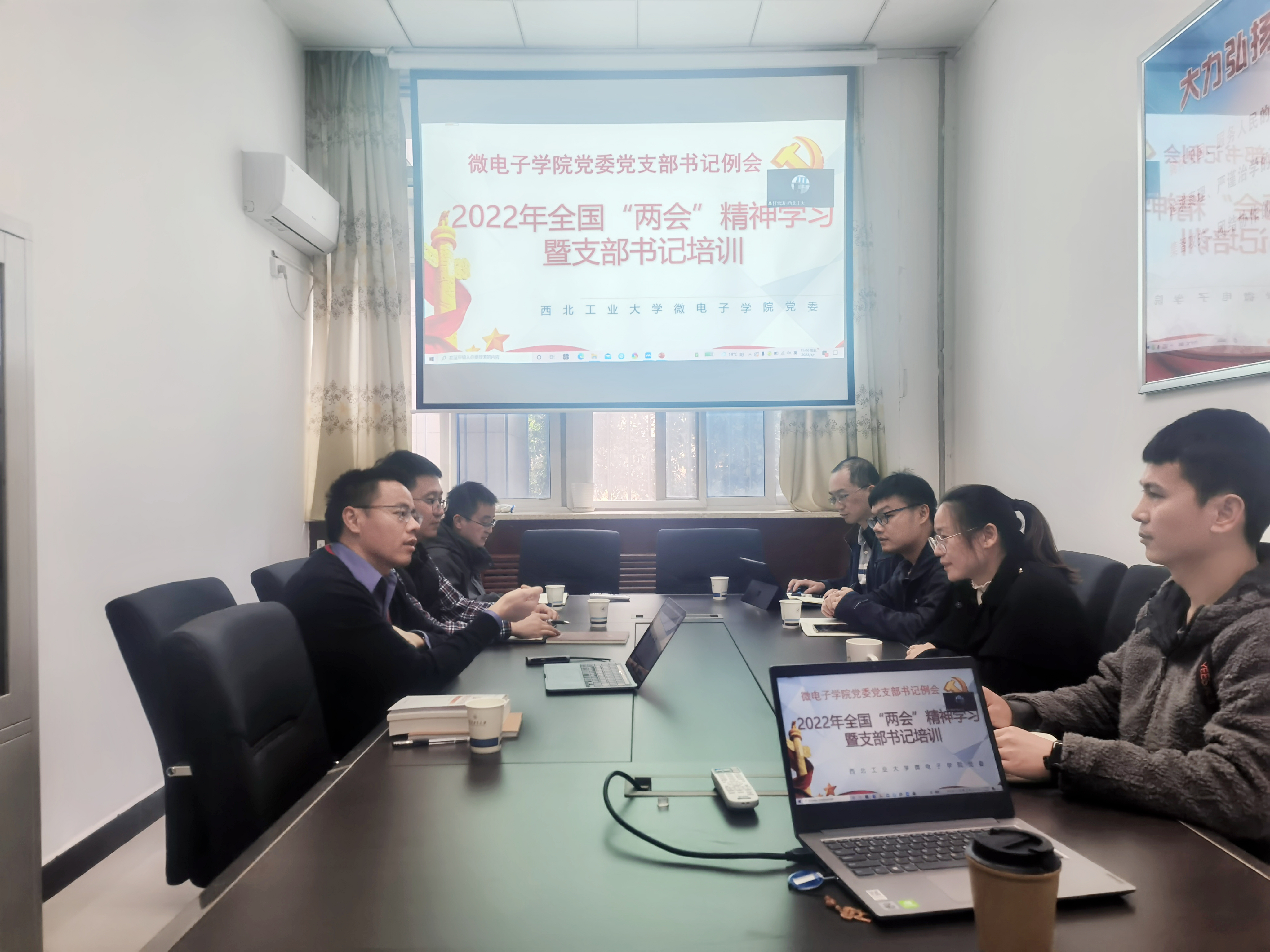 3月31日,为深入学习贯彻2022年全国两会精神,并进一步提升学院新任党支部书记业务能力,太阳成集团tyc122ccvip在学院楼140会议室召开2022年全国两会精神学习暨支部书记培训会议。会议由学院党委副书记(主持工作)甘雪涛主持,西安/太仓地区党支部书记分别线上线下联动参加。
