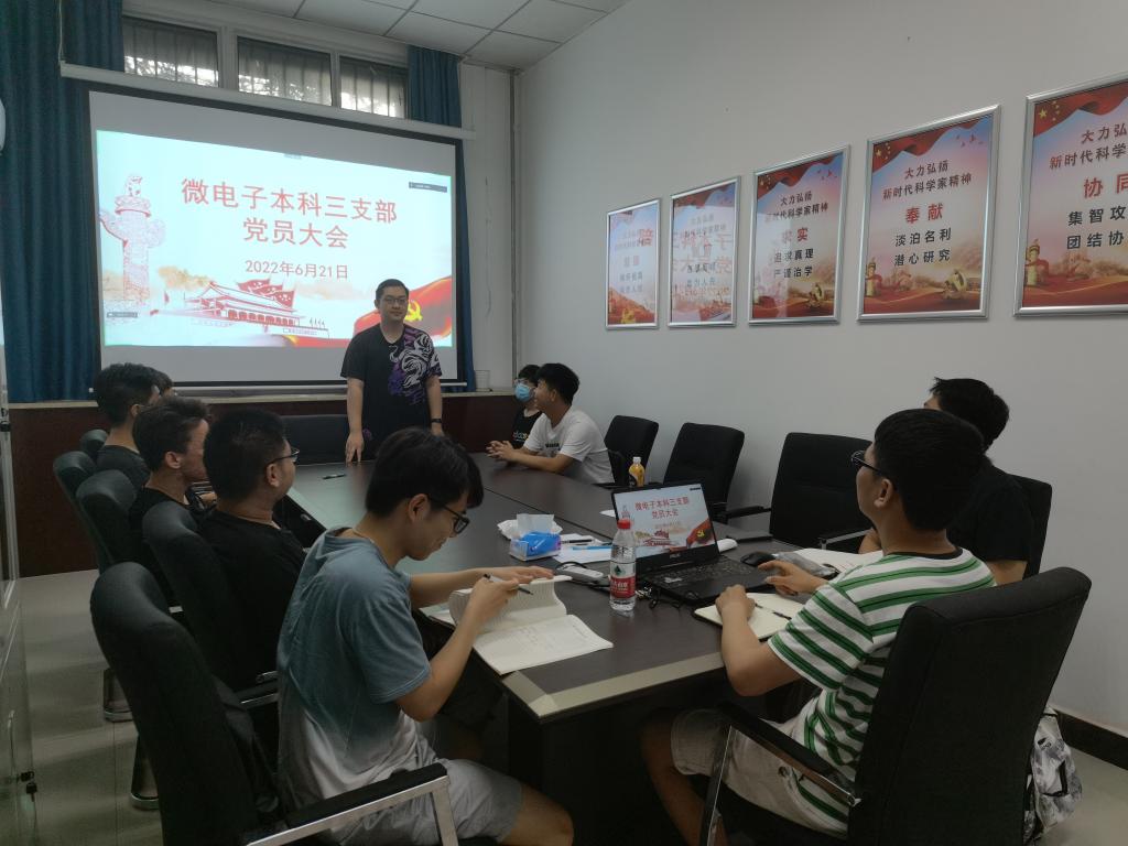 2022年6月21日,太阳成集团tyc122ccvip第三党支部在学院140会议室召开预备党员转正大会暨“青春献礼二十大·强国有我新征程”主题党日活动,会议由支部书记黄佛保老师主持,支部全体党员参加了此次会议。