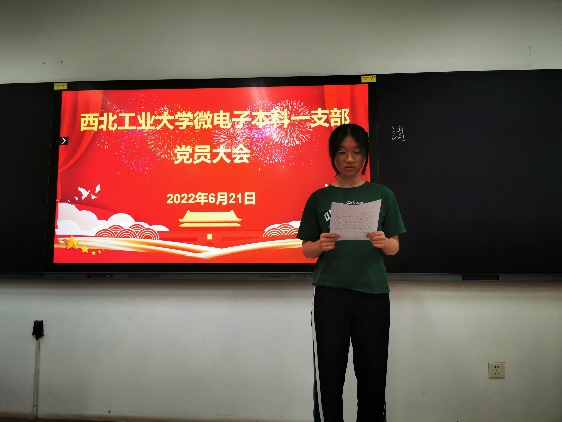 会议开始,李伟首先宣布了本支部的王华章等10名预备党员同志经过1年的预备期考查,目前满足转正条件。接下来10名预备党员进行转正发言,表明自己加入中国共产党的坚定决心以及对自己在从去年六月份到现在为止一年考察期中的自身问题的反思总结以及改进提升,现在已经完全做好成为一名正式党员的准备,以后会更加时刻注意自己的党员形象,认真学习党章党规,积极参与党支部各项活动,在生活和学习上起到引领带头作用。