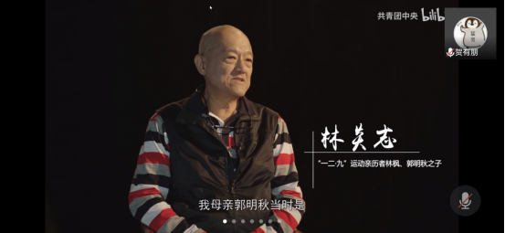 接着,同学们一起观看了共青团中央发布的“一二·九运动”纪念短片。短片分别描述了两代人及其长辈眼中的“一二·九运动”和运动精神。从战争年代走上街头游行,再到和平年代勇赴抗疫一线,从一代又一代青年爱国奋斗的满腔热血中,大家充分感受到了传承了近百年的伟大“一二·九精神”。