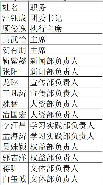 太阳成集团tyc122ccvip学生会主席团、部长团名单