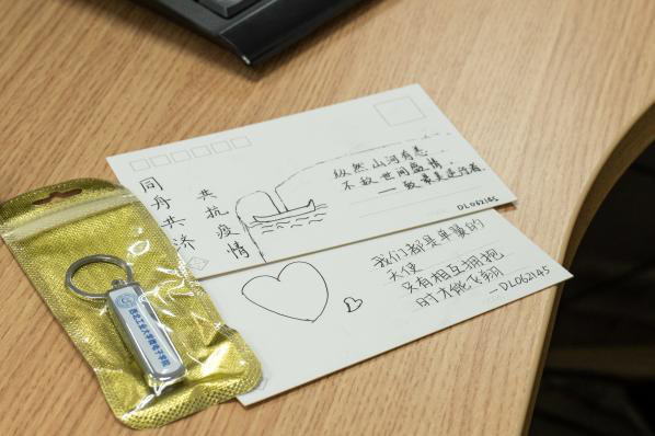 由于来访时仍处于工作时间,老师们在岗位上辛勤工作,同学们不约而同地放轻了脚步,将原本想向老师们表达的万语千言在嘴边浓缩成了一两句简单的感谢。收到明信片的老师们十分感动,与同学亲切交流。就是这样一场特别“安静”的感谢活动,体现出的却是师生双方“相互奔赴”,共同为疫情防控工作贡献自己的一份力量。仪式本身虽被简化,感激之情依旧浓厚。