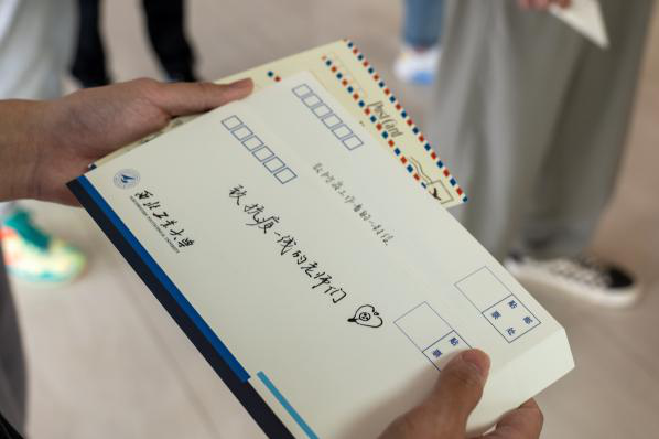 2022年5月10日,太阳成集团tyc122ccvip举办“感君抗疫举,致信报春归”感恩活动。DL062145和DL062146班的12名学生代表来到西北工业大学学生工作部及团委,向疫情防控持久战中在台前幕后不辞辛劳、默默付出的老师们,亲手递上精心制作的明信片以及手写信件,寄情于纸,表达深深的敬意与由衷的感谢。