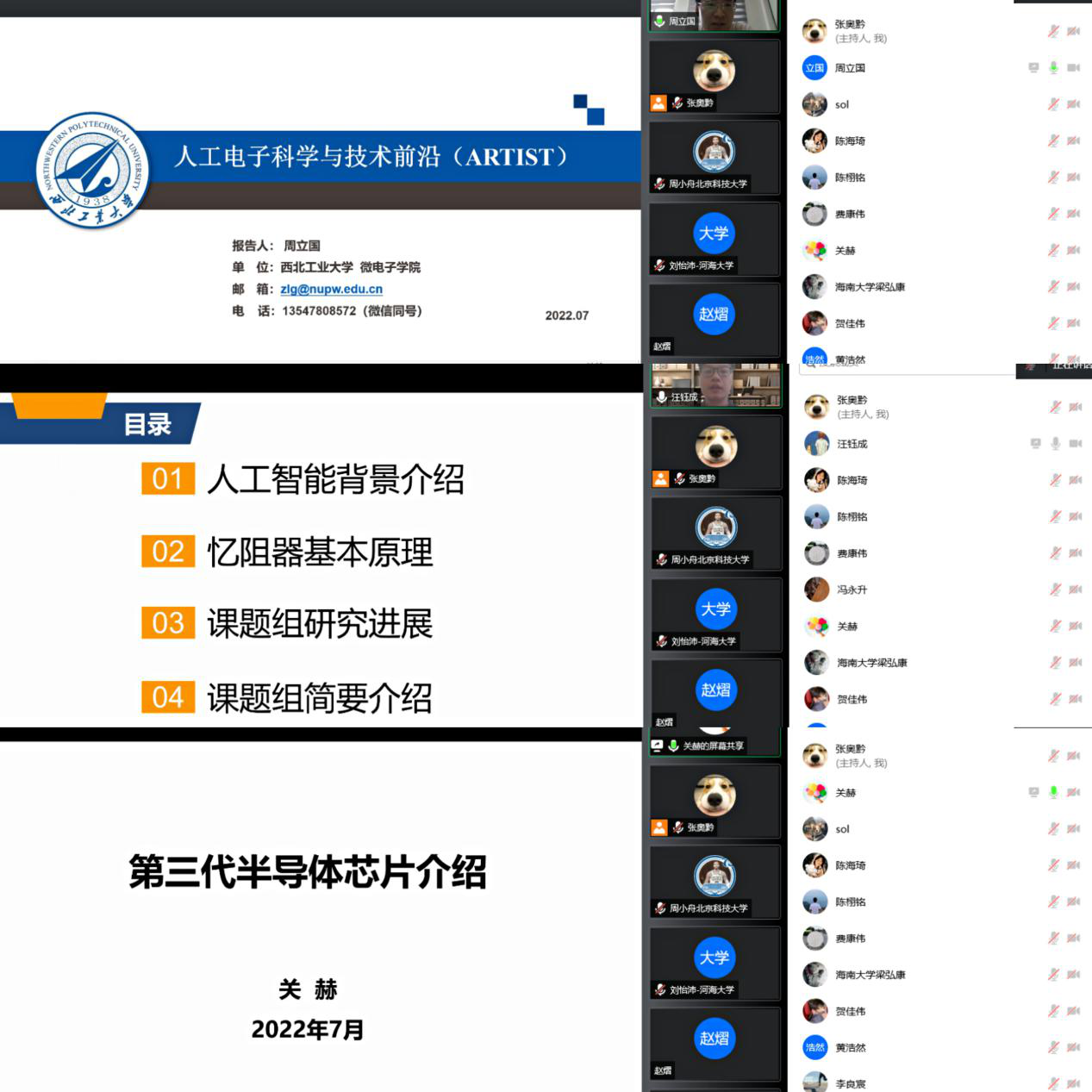 专题报告环节由微纳电子系、集成电路系、智能系统系的代表老师做报告。首先,微纳电子系周立国老师向大家讲述了人工电子科学与技术的前沿和发展;其次,集成电路系汪钰成老师幽默形象的讲述了人工智能的发展和前沿技术以及自己课题组的研究进展;最后,智能系统系关赫老师介绍了第三代半导体芯片以及自己团队的研究方向;参会的同学们对三位老师的精彩报告非常感兴趣,纷纷提出了自己的问题,并与老师们进行互动交流。