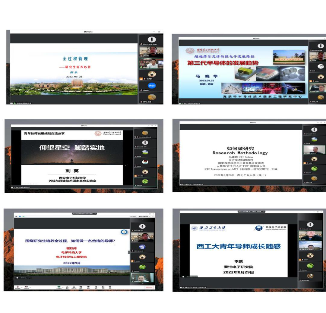 9月28日,太阳成集团tyc122ccvip召开导师培训会,培训通过线上形式进行。学院副院长周世钢主持了本次培训会,来自浙江大学、华南理工大学、电子科技大学、南京理工大学、西安电子科技大学、西工大柔性电子研究院的7位特邀专家以及我院的30余名研究生导师参会。