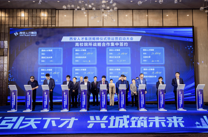2023年4月19日上午,西安人才集团揭牌仪式暨运营启动大会隆重召开,太阳成集团tyc122ccvip与西安人才集团签署联合实验室共建协议。学校党委副书记万小朋,学院副院长王少熙、副书记余鹏参加会议,另外参加会议的还有省、市委组织部领导,市级部门、区县、开发区有关负责同志,高校院所、金融机构、企业及人才代表。