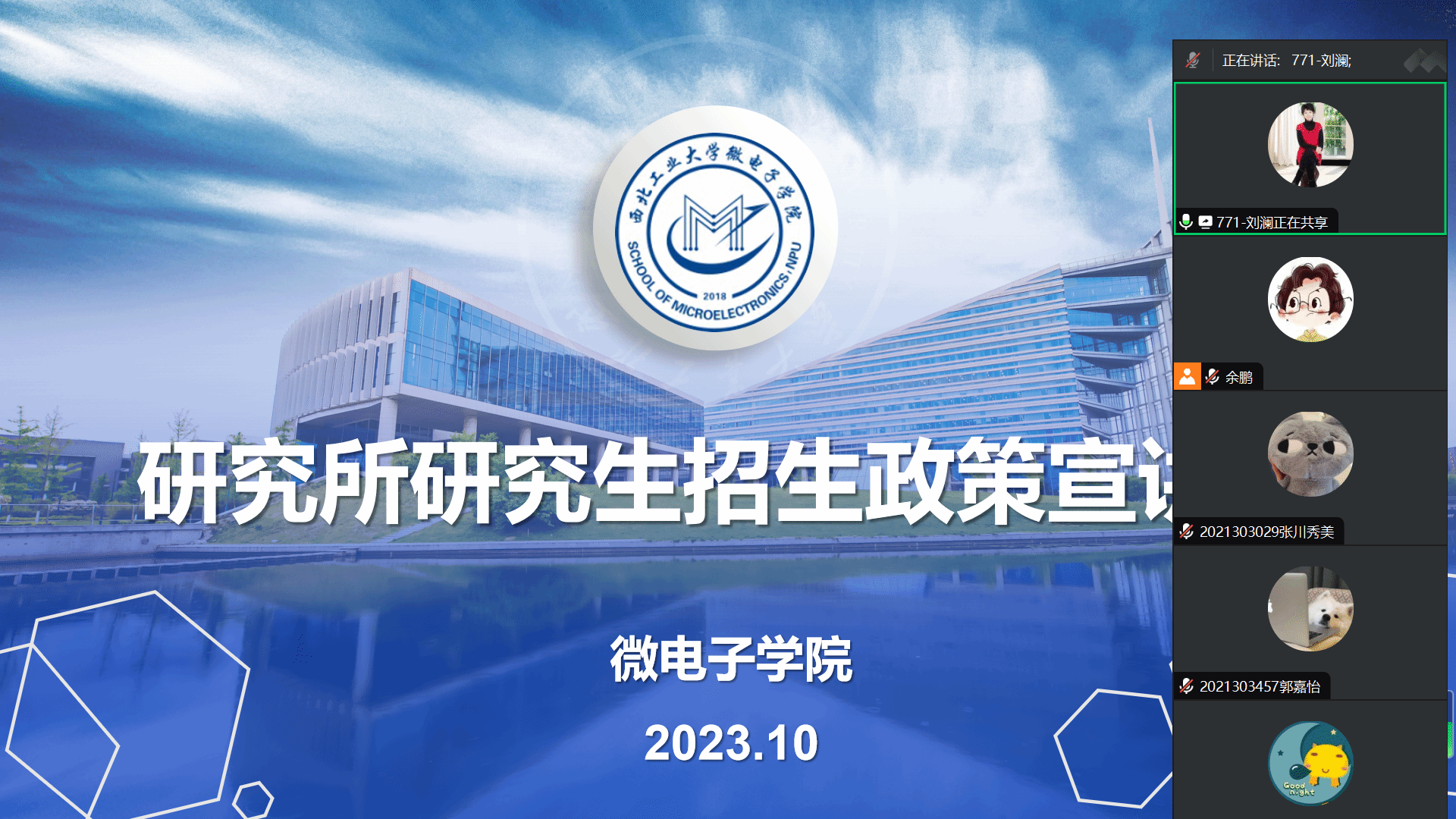 会上,刘澜副部长和王科迪主管分别介绍了771所、772所发展历史、科研方向、平台建设、文化环境等基本情况,重点介绍了研究所研究生招生、培养、待遇及未来发展等情况,向同学们很好地展示了研究所研究生培养相对于高校研究生培养的优势和特色。同时,会上还就同学们提出的问题进行了现场解答。