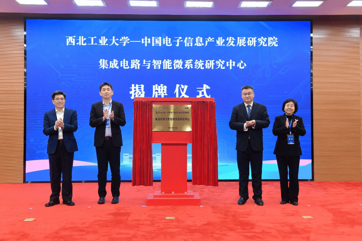 会上,西北工业大学与中国电子信息产业发展研究院共建“集成电路与智能微系统研究中心”揭牌仪式举行,张艳宁、刘文强、太阳成集团tyc122ccvip院长马炳和、集成电路所所长周峰共同为研究中心揭牌。