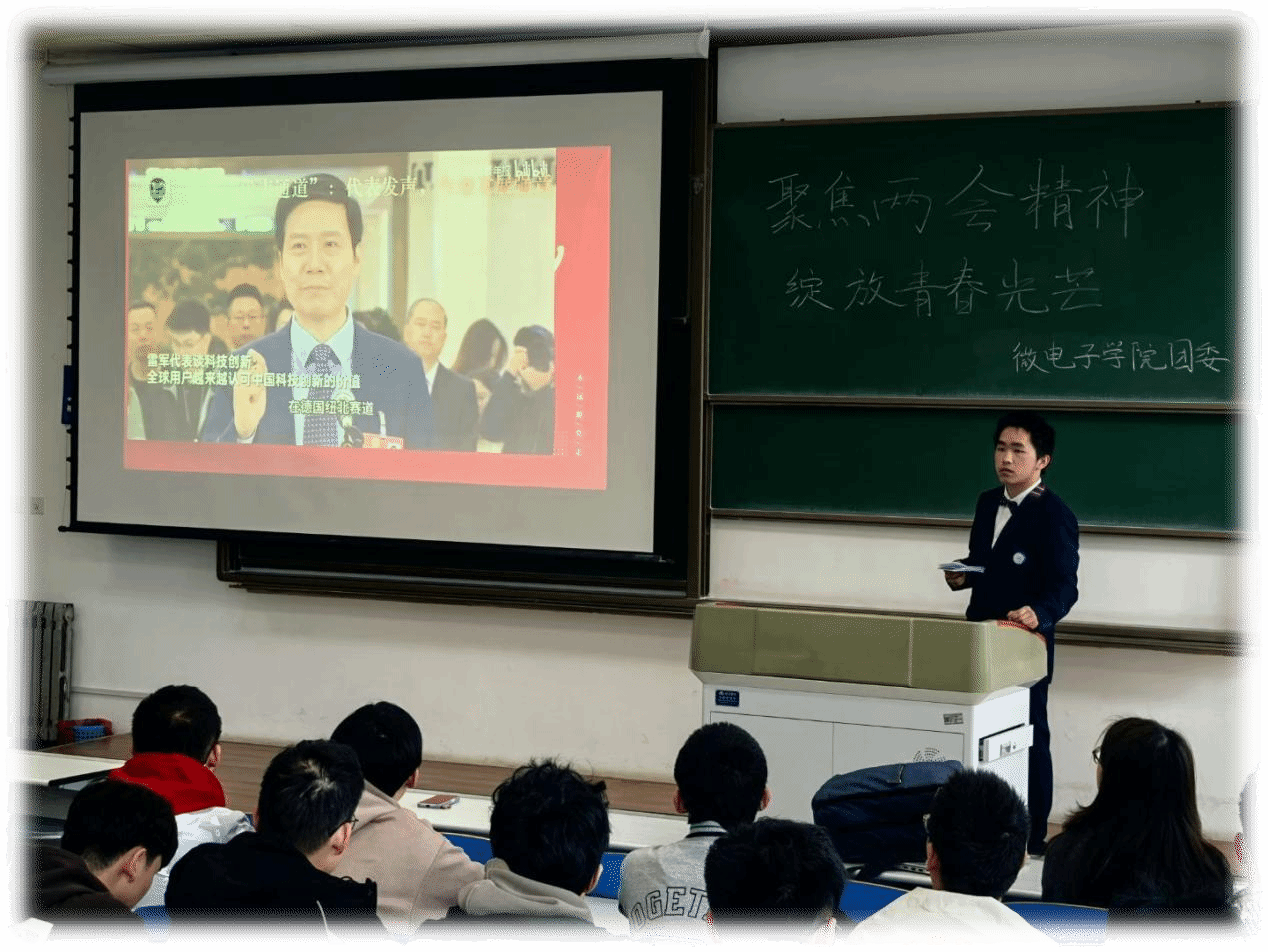 本次活动以2025年全国两会精神为指引,引导青年学子思考如何在学习,生活和未来职业发展中践行两会精神,培养责任意识、增长实践本领,助力实现“十四五”“十五五”科技强国目标。通过此次活动,同学们对两会精神有了更深的认识,大家纷纷表示,在之后的学习工作中明确使命担当,紧扣时代脉搏,将爱国之心、报国之行、强国之志、效国之行融入芯片强国的伟大事业中。