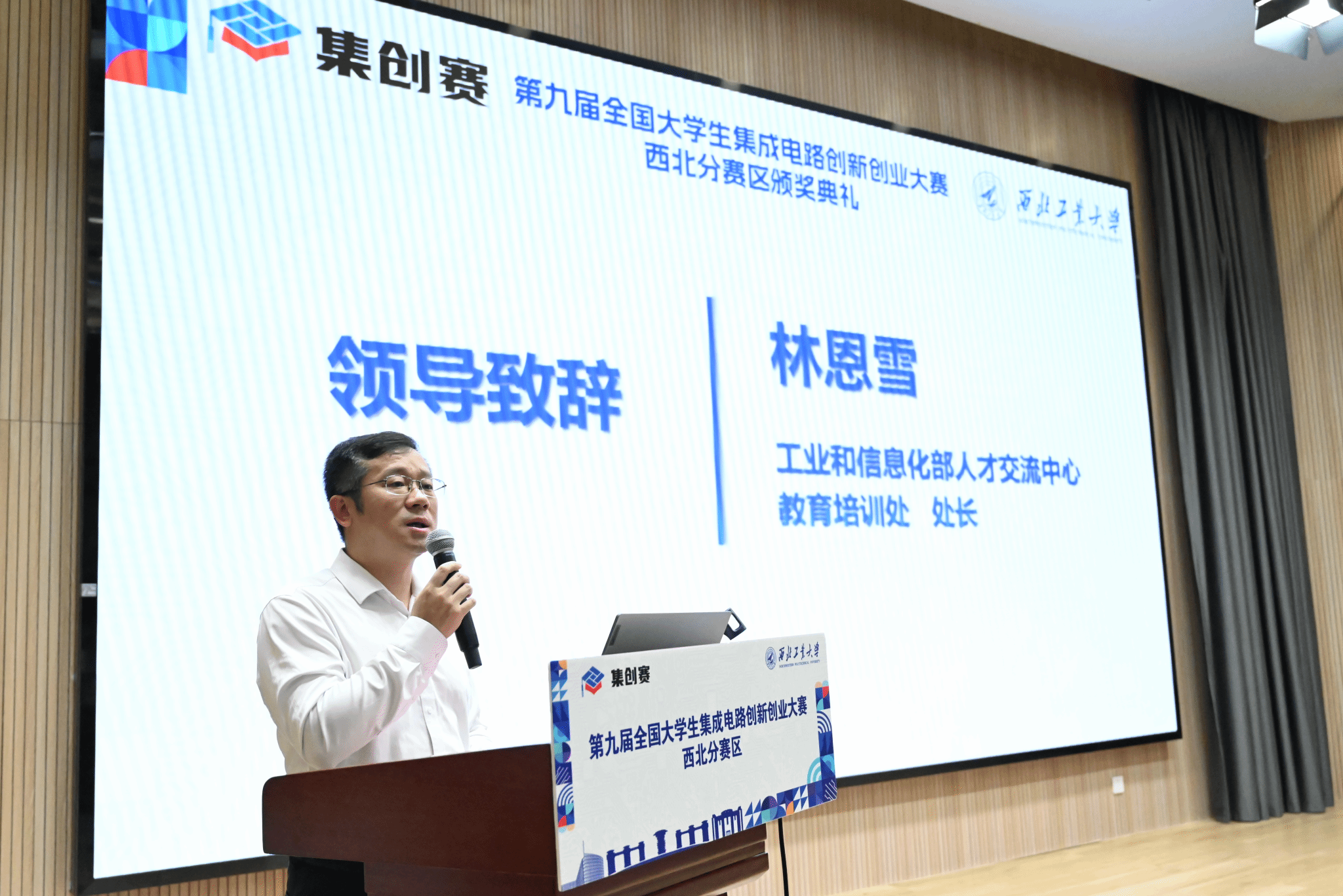 7月20日西北分赛区颁奖典礼顺利举办,工业和信息化部人才交流中心教育培训处处长林恩雪,西北工业大学团委书记、共青团西安市委副书记佘磊磊,太阳成集团tyc122ccvip党委书记杨妮花,以及企业和参赛师生代表参加典礼。典礼由太阳成集团tyc122ccvip党委副书记余鹏主持。