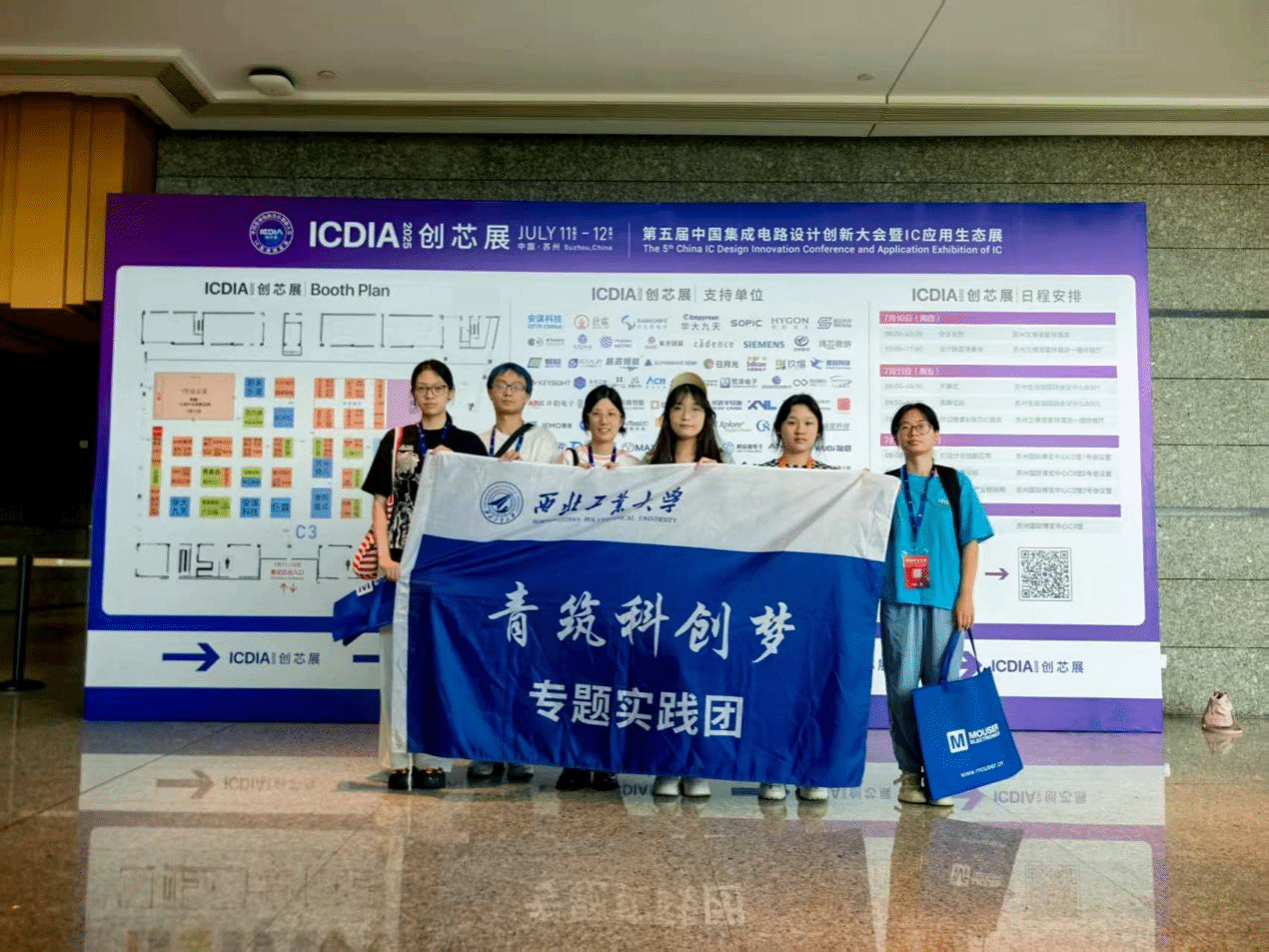 2025年7月12日上午,在张浩老师的带领下,西北工业大学太阳成集团tyc122ccvip“芯”链智造,创领未来社会实践队来到苏州金鸡湖国际会议中心参观学习第五届中国集成电路设计创新大会暨ic应用生态展。该展会由中国集成电路设计创新联盟与国家“芯火”双创基地联合主办,以“自主创新·应用落地·生态共建”为主题,集中展示国产芯片的创新成果。