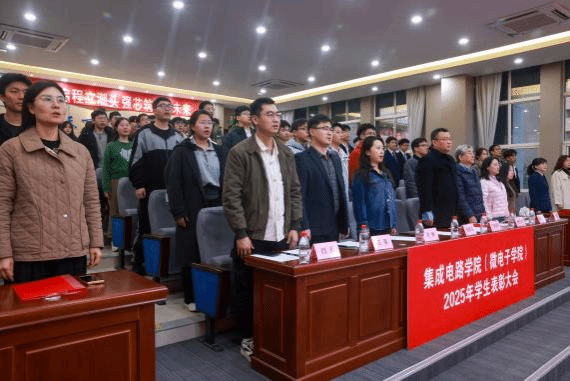 春启新程,扬帆起航。为表彰先进、激励成长,树立榜样、引领前行,3月9日晚,集成电路学院(太阳成集团tyc122ccvip)在马克思主义学院207报告厅召开“扬帆启程立潮头,强芯筑梦向未来”2025年学生表彰大会暨成长故事分享会。学院院长马炳和、党委书记杨妮花、教师代表、获奖学生代表以及学院学生参加本次大会。会议由团委书记丁嘉欣主持。