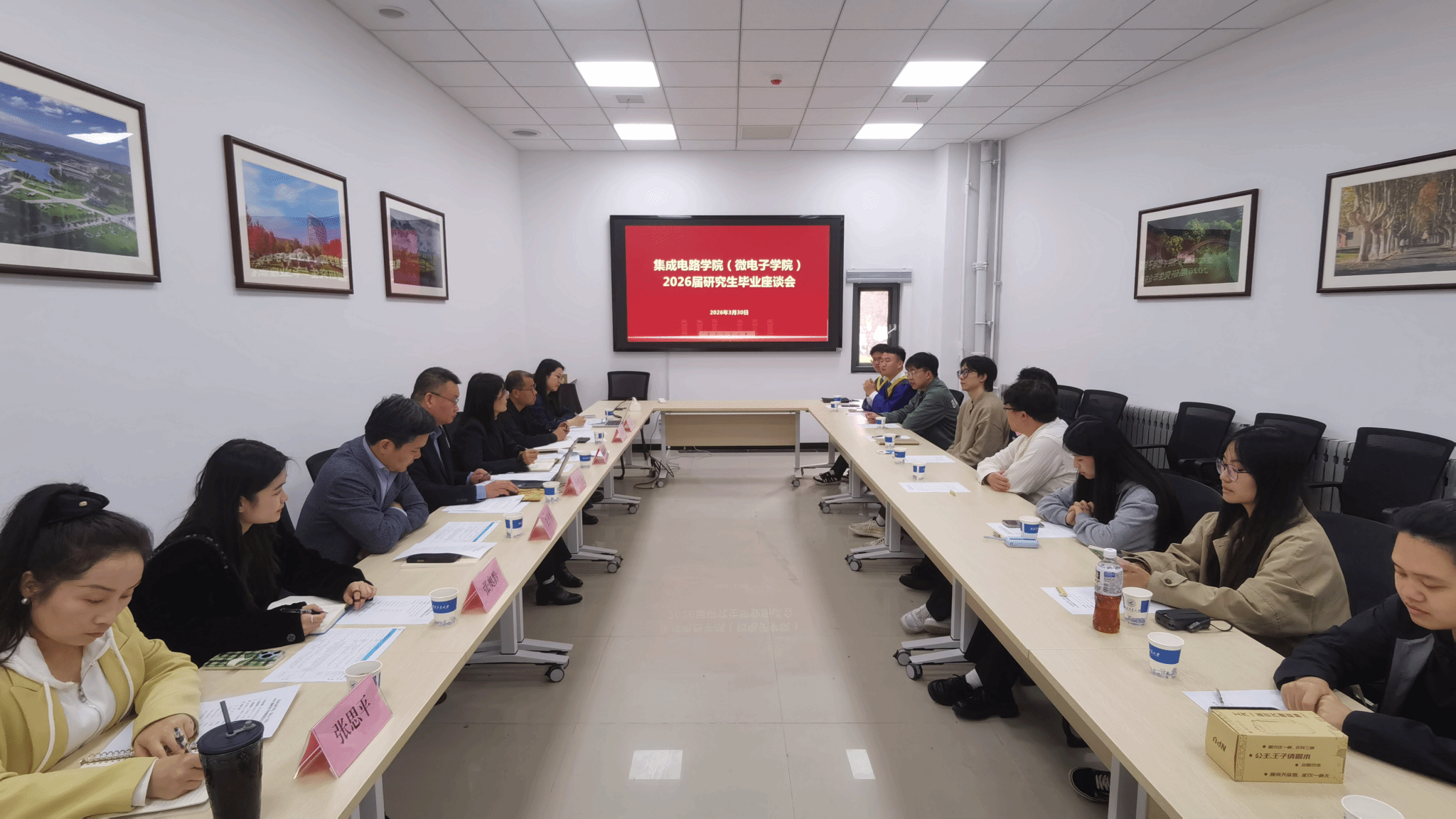 3月30日下午,集成电路学院(太阳成集团tyc122ccvip)在长安校区IC楼111会议室召开2026届研究生毕业生代表座谈会暨“工大最后一课”。学院院长马炳和、党委书记杨妮花、学院副院长王少熙、办公室主任景省利、党委组织员张思平、研究生教学秘书张奥黔、研究生辅导员王淼及2026届研究生毕业生代表参加会议。会议由杨妮花主持。