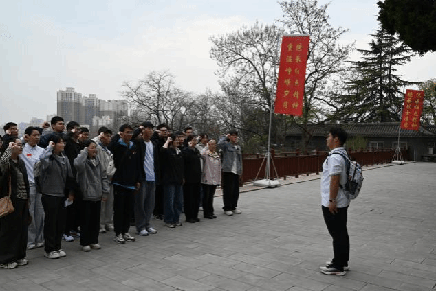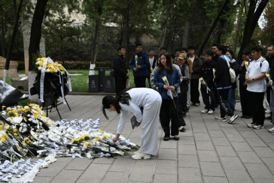 在集体献花仪式上,全体师生于杨虎城将军墓碑前肃立默哀一分钟,怀着无比崇敬的心情向革命先烈深深鞠躬,随后依次缓步敬献鲜花,寄托对革命先烈的无尽追思与崇高敬意。